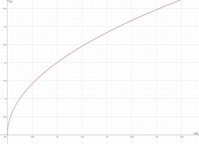 Korzystając ze wzoru na okres drgań, uzupełniamy tabelę o szukane wartości, a następnie na podstawie wzoru na okres rysujemy jego wykres w zależności od długości wahadła.