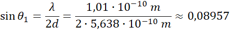 Skorzystaj z dyfrakcyjnego wzoru Bragga