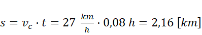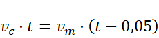 Pojazdy spotkają się w tej samej odległości s od punktu startu, po czasie t dla ciężarówki (c) i t - 3 min = t-0,05 h dla motocykla (m). Ponieważ