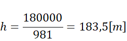 . Za wartość energii elektrycznej podstaw pracę wykonaną rzez prąd elektryczny o mocy 100 W. Z równości energii, oblicz wartość wysokości ciała.
