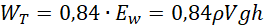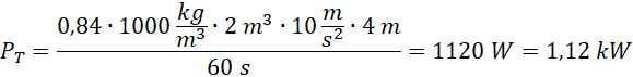 Najpierw obliczamy energię, jaką posiada woda, a więc energię potencjalną. Turbina wykorzystuje 84% tej energii. Na koniec korzystamy ze wzoru na moc i wstawiamy dane liczbowe w jednostkach układu SI.