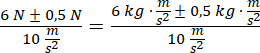 ). Dokonując przekształceń, wyznaczamy masę. Niepewność pomiarowa siłomierza to najmniejsza podziałka – w tym przypadku jest to 0,5 N.