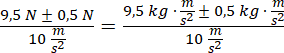 ). Dokonując przekształceń, wyznaczamy masę. Niepewność pomiarowa siłomierza to najmniejsza podziałka – w tym przypadku jest to 0,5 N.