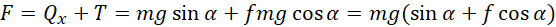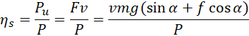 Na podstawie I zasady dynamiki na kierunku równoległym do równi obliczamy siłę, z jaką działa silnik. Następnie wyznaczamy wzór na moc użyteczną. Wstawiamy go do wzoru na sprawność i wstawiamy dane liczbowe.