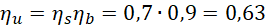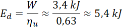 Na początku obliczamy sprawność całego układu, jako iloczyn sprawności silnika i bloku. Następnie obliczamy ilość energii dostarczonej, korzystając z obliczonej pracy siły naciągu w punkcie b.