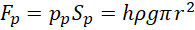 Zapisujemy wzory na siłę parcia na podstawę oraz ścianę boczną, wiedząc, że jest to iloczyn ciśnienia i pola powierzchni. Dla obliczenia siły parcia na ścianę boczną zakładamy, że siła działa na wysokości równej połowie wysokości naczynia.