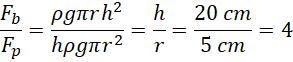 Wiedząc, że naczynie w kształcie walca o promieniu podstawy 5 cm i wysokości 20 cm wypełniono całkowicie wodą oblicz, ile razy większa jest wartość siły parcia na boczną powierzchnię naczynia od wartości parcia na jego dno.