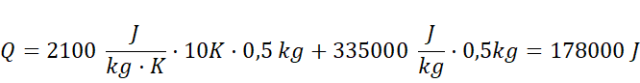 Energia zużyta do roztopienia kostki lodu to suma ciepła dostarczonego, aby podnieść temperaturę lodu do temperatury topnienia i ciepła potrzebnego do stopienia tej kostki lodu. Energia ta jest pobierana z wody, powodując spadek temperatury, co można obliczyć ze wzoru.