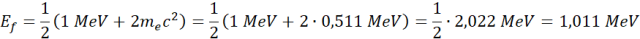 Energia fotonu będzie równa połowie sumy energii kinetycznej cząstek i ich energii spoczynkowej. Pamiętaj, iż energia spoczynkowa pozytonu jest równa energii spoczynkowej elektronu.