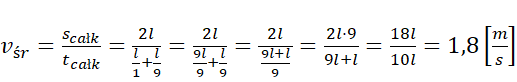 Szybkość średnia to iloraz całkowitej drogi i czasu potrzebnego na jej pokonanie. Znając prędkości wypadkowe jako sumy wektorów prędkości rzeki i statku oblicz czas jako iloraz drogi i prędkości dla każdego odcinka. W otrzymanym równaniu pozostaje droga jako niewiadoma l. Następnie podstaw do równania na prędkość średnią, w którym skróceniu ulegnie niewiadoma droga l, dając wartość średnią prędkości.