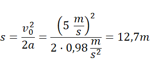 Ruch na pierwszej nawierzchni jest jednostajny, a na drugiej nawierzchni jednostajnie opóźniony. Oblicz siłę, która popycha ciało. Jest ona taka sama na obu nawierzchniach. Opóźnienie na drugiej nawierzchni jest spowodowane różnicą między siłą tarcia, a siłą popychającą ciało. Oblicz opóźnienie, a następnie pokonaną w tym ruchu opóźnionym drogę.