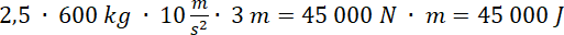 W = F ∙ s = 0,5 ∙ mo ∙ g ∙ 5 ∙ h = 2,5 ∙ mo ∙ g ∙ h