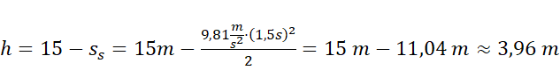 Wysokość spotkania to pewna odległość pokonana przez kulkę rzuconą, 15 m pomniejszone o drogę kulki upuszczonej. Czas spotkania jest taki sam dla obu kulek. Oblicz go przy pomocy porównania dróg. Następnie podstaw jego wartość do równania opisującego drogę przebyta przez jedną z kulek.