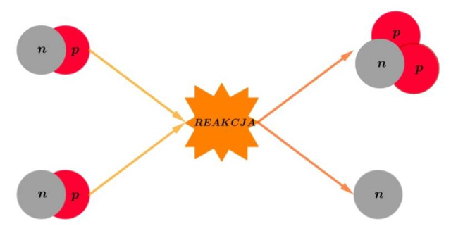 Określ cząstkę powstałą w wynik syntezy dwóch jąder izotopu