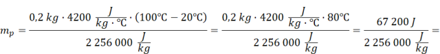 Wyznacz masę pary wodnej o temperaturze 100°C, jaką należy dołożyć, aby można było zagotować 200 g wody o temperaturze 20°C.