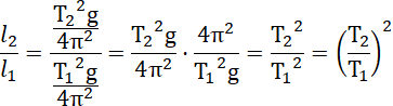 Wyznaczamy stosunek długości wahadeł: