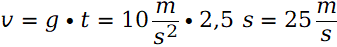 W tym zadaniu musisz znaleźć szybkość, jaką ciało osiągnie po 2,5 sekundach swobodnego spadku.
