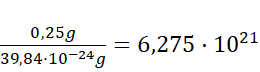 Oblicz, jaka część próbki pozostanie po 45 godzinach. Oblicz masę 1 atomu sodu, w gramach. Podziel masę próbki przez masę sodu, otrzymany wynik to liczba jąder.
