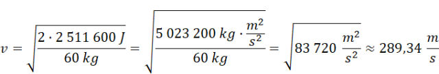 Wyznacz prędkość, jaką może osiągnąć rowerzysta o masie 60 kg, który rozpędza się na rowerze, którego masa wynosi 10 kg, wiedząc, że na wykonanie tej czynności spożytkował energię uzyskaną ze spożycia 100-gramowej tabliczki czekolady.