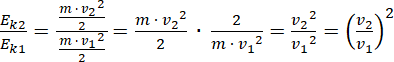 Wyznaczając, jaka część energii potencjalnej zmieniła się w energię kinetyczną, obliczamy stosunek energii kinetycznych z oporami ruchu (Ek2) oraz bez nich (Ek1). Obliczoną wartość mnożymy przez 100%.