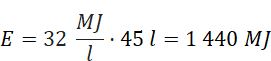 Wyznacz energię dostarczoną przez 45 l benzyny, znajdującej się w baku samochodu, jeśli jej wartość energetyczna wynosi 32