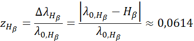 Dla tych linii mamy odpowiednio przesunięcia ku czerwieni: