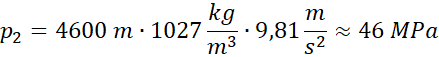 Na podstawie danych zgromadzonych w treści zadania oblicz wzrost ciśnienia wywieranego przez wodę na balast na głębokości 4,6 km w porównaniu do głębokości 2,2 km.