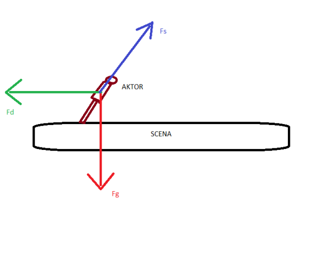 Siła grawitacji, dośrodkowa oraz nacisku stóp aktora na podłoże znoszą się.