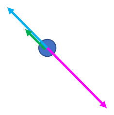 Niebieski wektor ma 2 cm, a różowy 3 cm. Aby wszystkie siły się równoważyły, narysuj wektor o długości 1 cm (różnica długości narysowanych wektorów) skierowany tak samo, jak krótszy wektor.