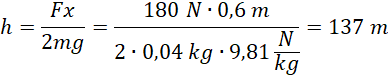 Początkowa energia kinetyczna strzały, a więc i maksymalna energia potencjalna jest równa energii, zmagazynowanej w strzale, podczas gdy jest ona naciągnięta na odległość 60 cm względem łuku.