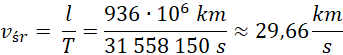 Oblicz średnią szybkość ruchu Ziemi, jeśli eliptyczna orbita Ziemi ma długość , a okres obiegu . Wynik wyraź w km/s.