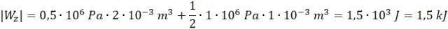 Obliczamy wartość bezwzględną siły zewnętrznej korzystając z pola pod wykresem. Siła zewnętrzna jest ujemna, ponieważ gaz zwiększa swoją objętość.