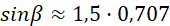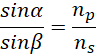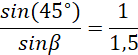 W pierwszym kroku korzystałeś z prawa Snella, aby obliczyć kąt załamania dla światła przechodzącego z powietrza do szkła. Współczynnik załamania powietrza wynosi zawsze 1, a dla szkła w tym przypadku wynosi 1,5. Po podstawieniu wartości oraz kąta padania