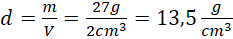 Dla zawartości procentowej złota 75% gęstość wynosi