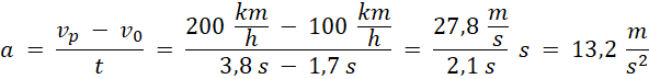 Jakie jest przyspieszenie bolidu podczas rozpędzania od do ?