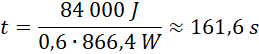 Na początku wyznacz ilość energii potrzebnej do ogrzania ¼ litra wody o 80°C. Następnie zapisz wzór na moc, wykorzystując jej zależność on dostarczonej energii. Uwzględnij, że do grzania wody wykorzystywane jest 60% mocy grzałki (obliczonej w podpunkcie a). Przekształć wzór, aby otrzymać zależność na czas i wstaw dane liczbowe.
