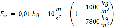 Wskazanie siłomierza, który przymocowany jest do zanurzonego ciała będzie wskazaniem siły wypadkowej działającej na to ciało. Będzie to różnica między siłą wyporu, a siłą ciężkości działającą na to ciało.