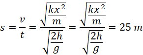 Na początku obliczamy prędkość początkową strzały, potem jej czas spadania z wysokości 120 metrów, znając te dwie wartości, możemy obliczyć zasięg.