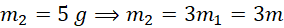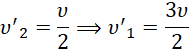 Korzystamy z zasady zachowania pędu oraz zachowania energii kinetycznej w zderzeniu sprężystym. Dokonując przekształceń wyznaczamy wartości obu ciała po zderzeniu – cięższa moneta będzie poruszać się z prędkością dwukrotnie mniejszą.