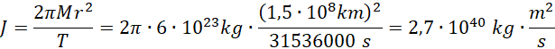 Jaka jest wartość momentu pędu Ziemi związanego z jej ruchem wokół Słońca?