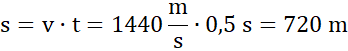 W ciągu sekundy dźwięk przebywa drogę 1440 m, a więc w ciągu pół sekundy przybędzie połowę tej odległości, czyli 720 m.