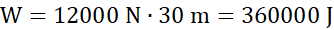 Silnik musi zrównoważyć łączny ciężar windy i ludzi w niej, który wynosi 12000 N, na drodze 30 m, a więc wykonuje prace 360000 J.