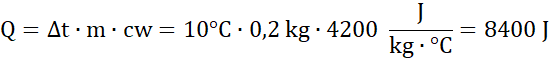 Aby obliczyć wartość ciepła, jakie pobrała woda, musimy pomnożyć jej masę, różnicę temperatur i ciepło właściwe.