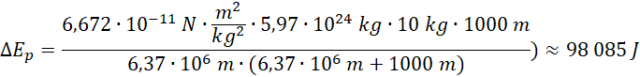 Podstawiamy dane do wzoru na przyrost energii potencjalnej w centralnym polu grawitacyjnym.