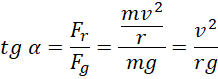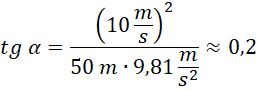 Tangens maksymalnego kąta oblicz jako stosunek siły dośrodkowej do siły ciężkości rowerzysty. Wstaw dane liczbowe w jednostkach SI i wykonaj obliczenia.