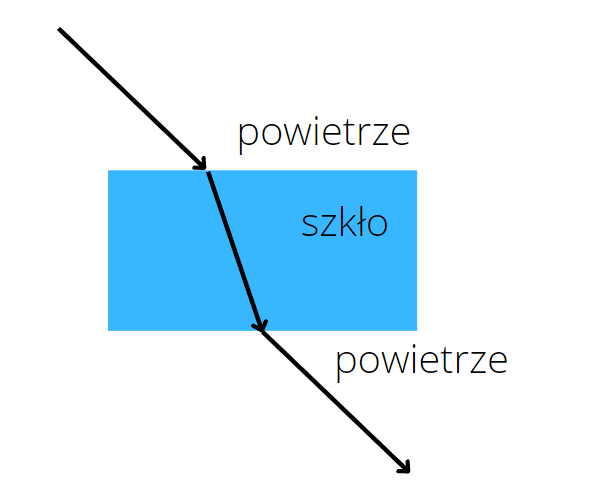 Narysuj, jak będzie biec promień w szkle oraz po przejściu przez szkło.