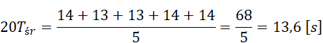 Średnią wartość 20T wyznacz jako średnią arytmetyczną poszczególnych wyników. Następnie z proporcji Średnią wartość okresu T.
