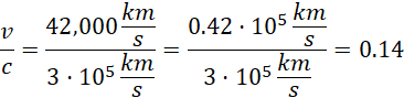 Ponieważ jest to znaczna prędkość, można ją wyrazić jako ułamek prędkości światła, która wynosi