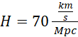 2. Skorzystaj ze stałej Hubble'a \(H\), która podaje prędkość ucieczki galaktyki na każdy megaparsek (Mpc) jej odległości od nas. Dla uproszczenia załóż wartość