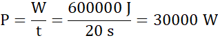 Łączna zmiana energii osób wywiezionych do góry to 600000 J, jest ona równa pracy, jaką wykonuje silnik w ciągu 20 sekund, a więc jego moc to 30000 W.